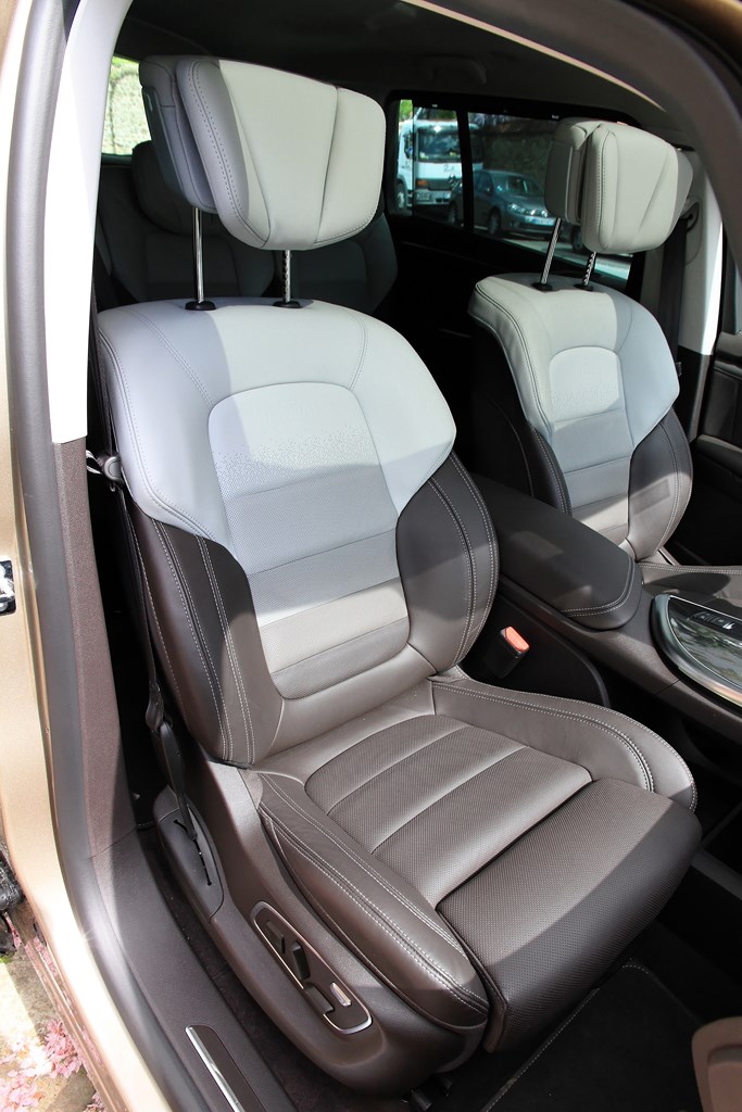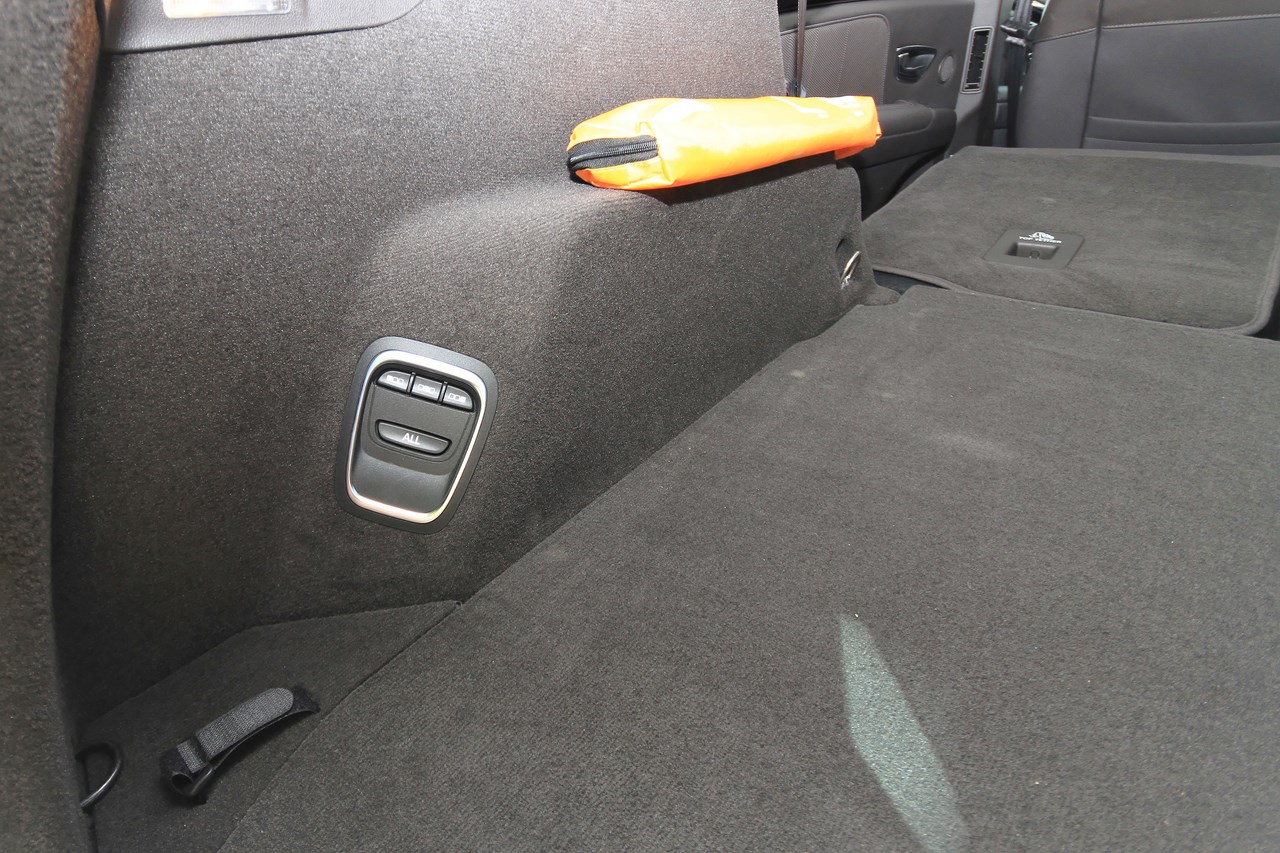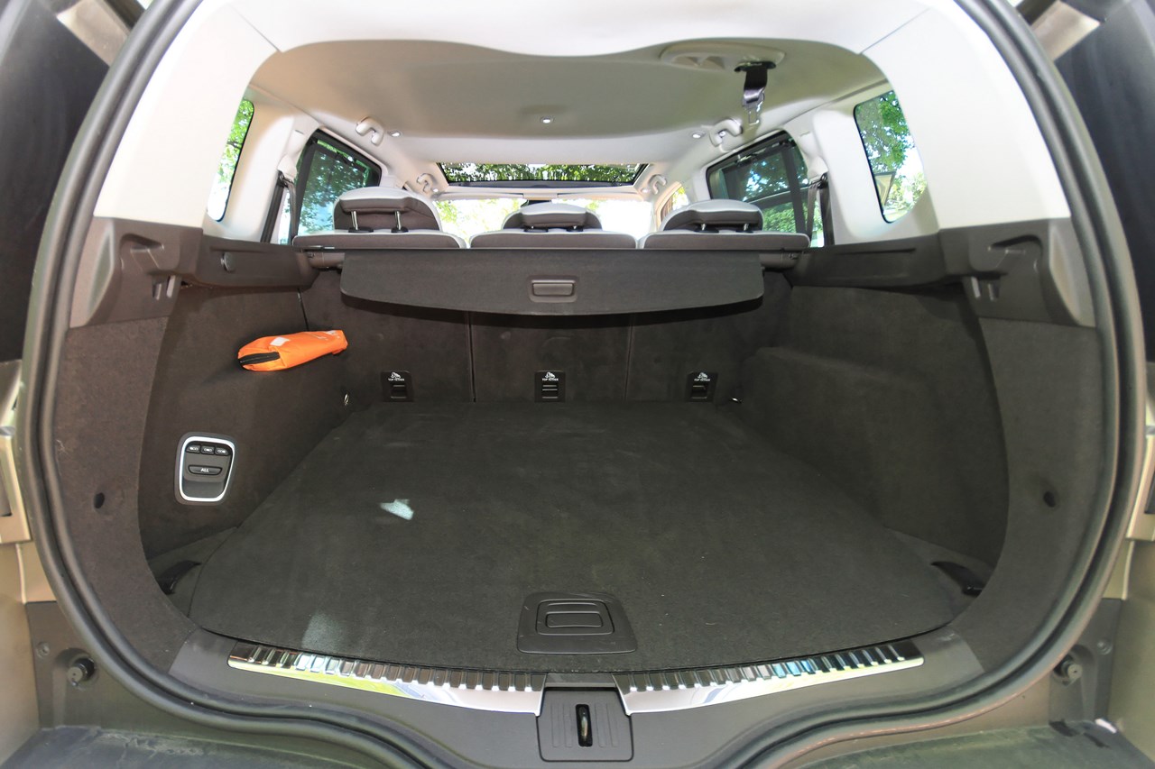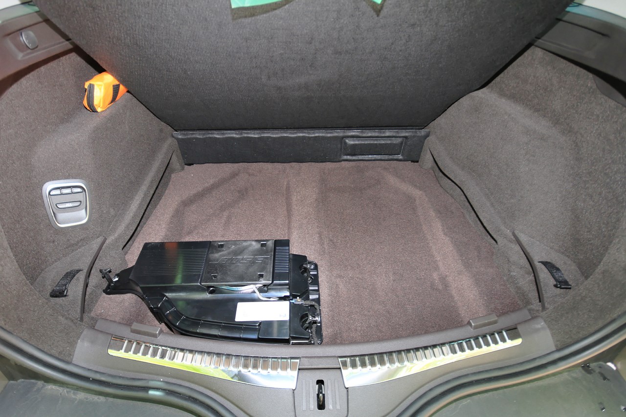 L’Initiale Paris est doté du plus haut niveau de finition. L’habitacle de notre Espace est tendu d’un cuir nappa pleine fleur (gris lune/Brun foncé) qui recouvre les sièges et les contre-portes. Ce raffinement se retrouve aussi à l’arrière avec des sièges escamotables et coulissants (sur 4 cm), équipés de la “Modularité One Touch”. Cet équipement permet de faire l’impasse sur les contraignants sièges démontables des générations précédentes et permet, selon les versions (5 où 7 places), de rabattre individuellement ou ensemble les sièges dans le plancher. Cette action s’opère depuis le poste de conduite (sur l’écran tactile de la tablette) ou, depuis le compartiment à bagages via une commande dédiée. Seul point négatif de cette dotation, en configuration deux places, l’intégration des sièges dans le plancher réduit la capacité du coffre à 2101 l en version cinq places et 2035 l en sept places. Avec près d’un mètre perdu par rapport au grand Espace 4 (3000 l), l’Espace 5 est incontestablement moins logeable.