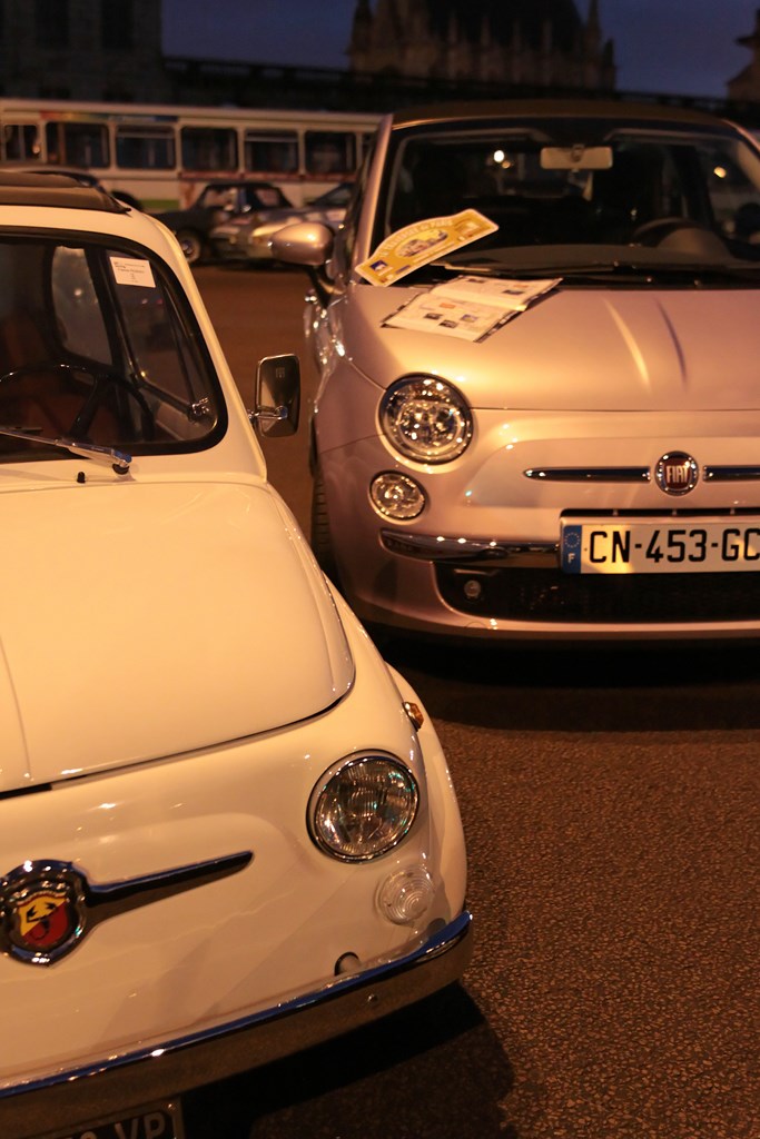 Notre première démarche consiste à rejoindre l’accueil presse pour prendre possession du programme de la journée. Après avoir révélé notre identité, nous recevons notre package comprenant le roadbook et la plaque de rallye avec la consigne de ne pas l’apposer sur notre voiture. Si la tentation est grande, je me souviens que le cachot n’est pas loin et j’applique la directive. Pendant que « P.E » prend connaissance du parcours, je profite de cet instant pour immortaliser la scène avec en arrière plan notre 500 et son ainée en version Abarth. Si l’instant est magique, faire poser côte à côte ces deux modèles revient à comparer les photos d’une star des années 60 ayant eu recourt au collagène. En clair, elle a bien vieilli, mais a gonflé!