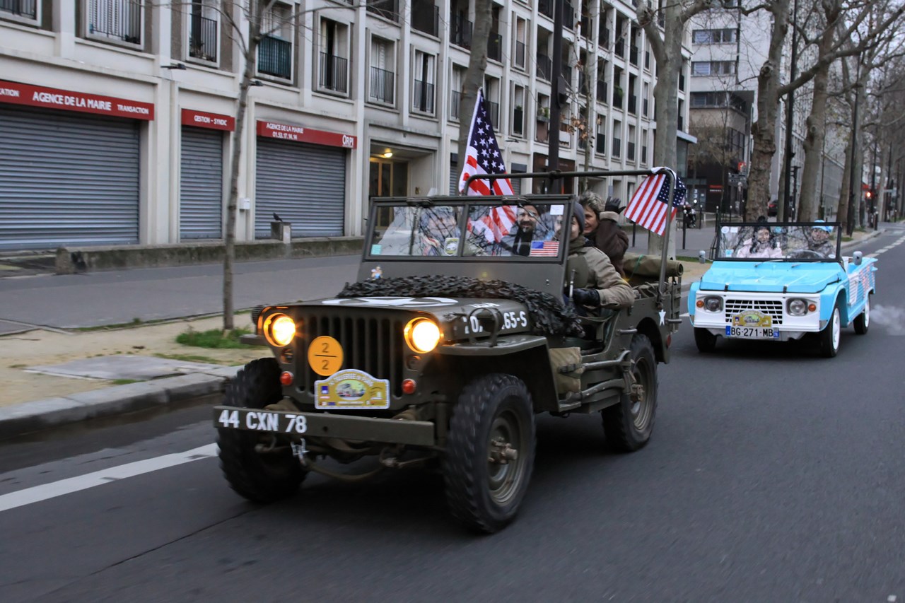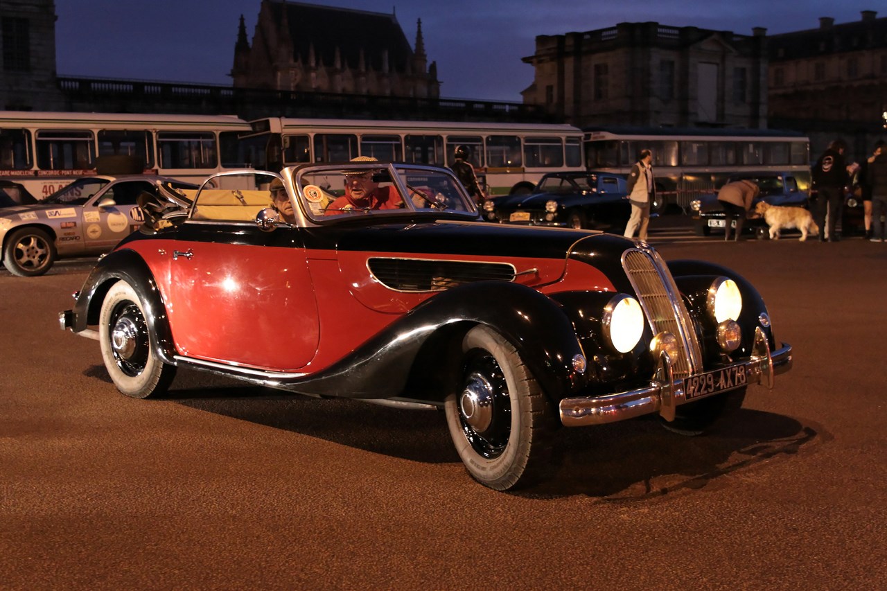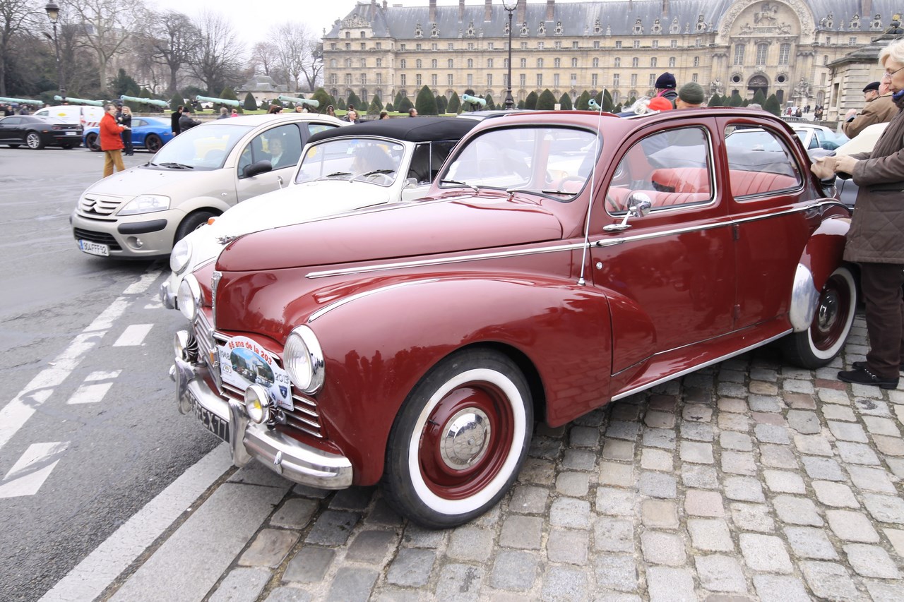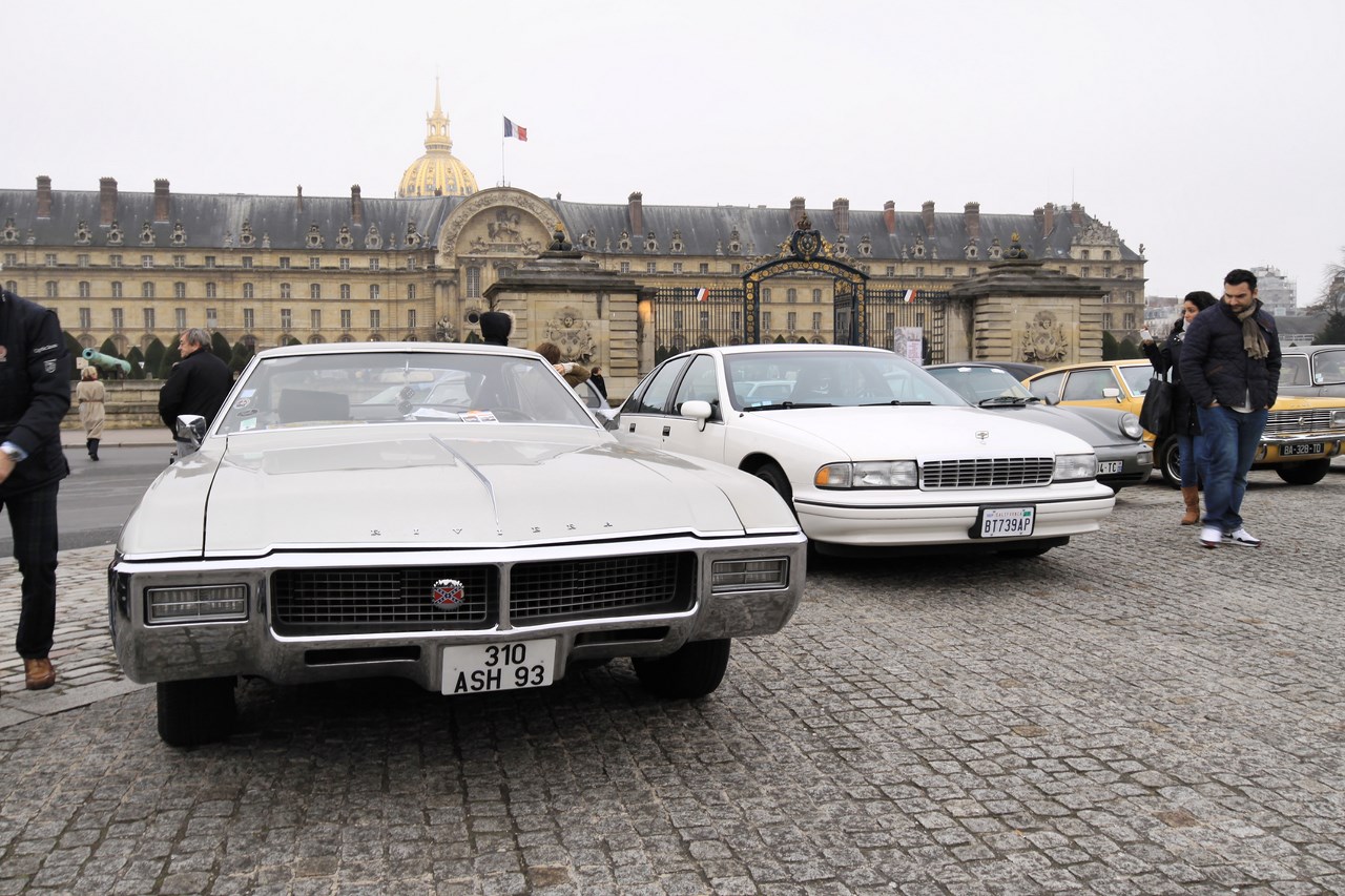 Après ce ravitaillement bénéfique pour l’équipage, nous décidons de ne plus suivre le parcours et de voler de nos propres ailes. Nous ne regretterons pas cette décision puisque Paris est maintenant assiégé par les voitures anciennes. La Place de la Concorde se transforme en musée automobile et les ponts parisiens qui mènent au Invalides sont magnifiés par la présence des Rolls-Royce, Delage et Delahay aux courbes sublimes. Nous décidons de mettre fin à notre traversée au pied du dôme des Invalides où deux mafieux armées jusqu’aux dents prennent la pose devant une Citroën Traction. Alors que nous quittons l’esplanade, le cortège de voiture repart en direction du Château de Vincennes, point d’arrivée de la traversée de Paris.
