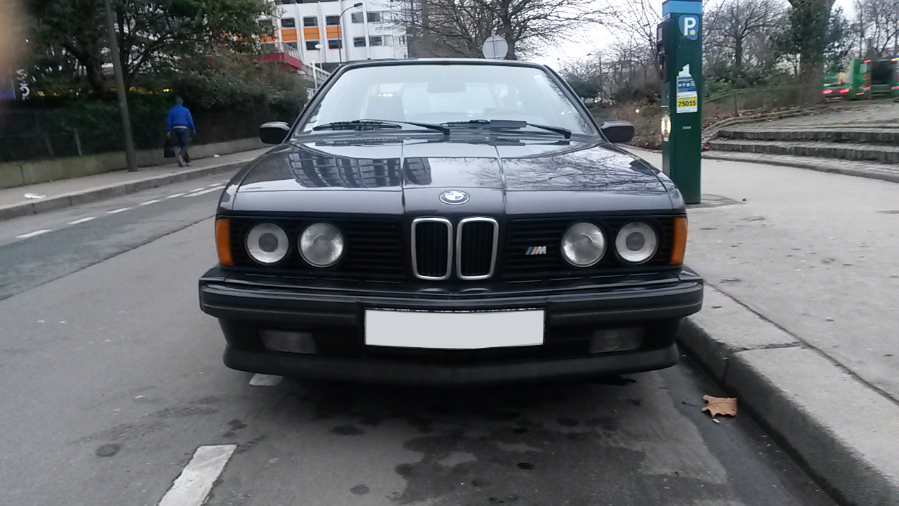 C’est à Paris, le long des quais, que j’ai aperçu ce magnifique coupé BMW M635 CSI. Ce modèle est l’un des derniers exemplaires avec ses optiques à loupes. Une superbe voiture que j’adore. Le coupé BMW série 6 est né en 1976 avec les modèles 628 CSI, 630 CS/CS, et 635 CSI. Seulement voilà, en 1984 BMW lui greffe le six cylindres (m88) de 3453 cm3 à 24 soupapes, dérivé de la M1. Avec lui, elle peut arborer le logo M sur la calandre et son coffre. Avec 286 ch et un couple de 340 Nm à 4500 tr/mn, les performances explosent et la sonorité devient démoniaque. Cette voiture filait à 255 km/h et abattait le 0 à 100 km/h en 6,4 S, avant de franchir la barre des 1 000 M en 26,4 S. La carrosserie arborait des extensions d’ailes et un béquet. Ses jantes (en Europe) chaussaient pneus Michelin TRX en 220/55 VR 390. L’habitacle se contentait de sièges sport et d’un compteur gradué jusqu’à 280 km/h.