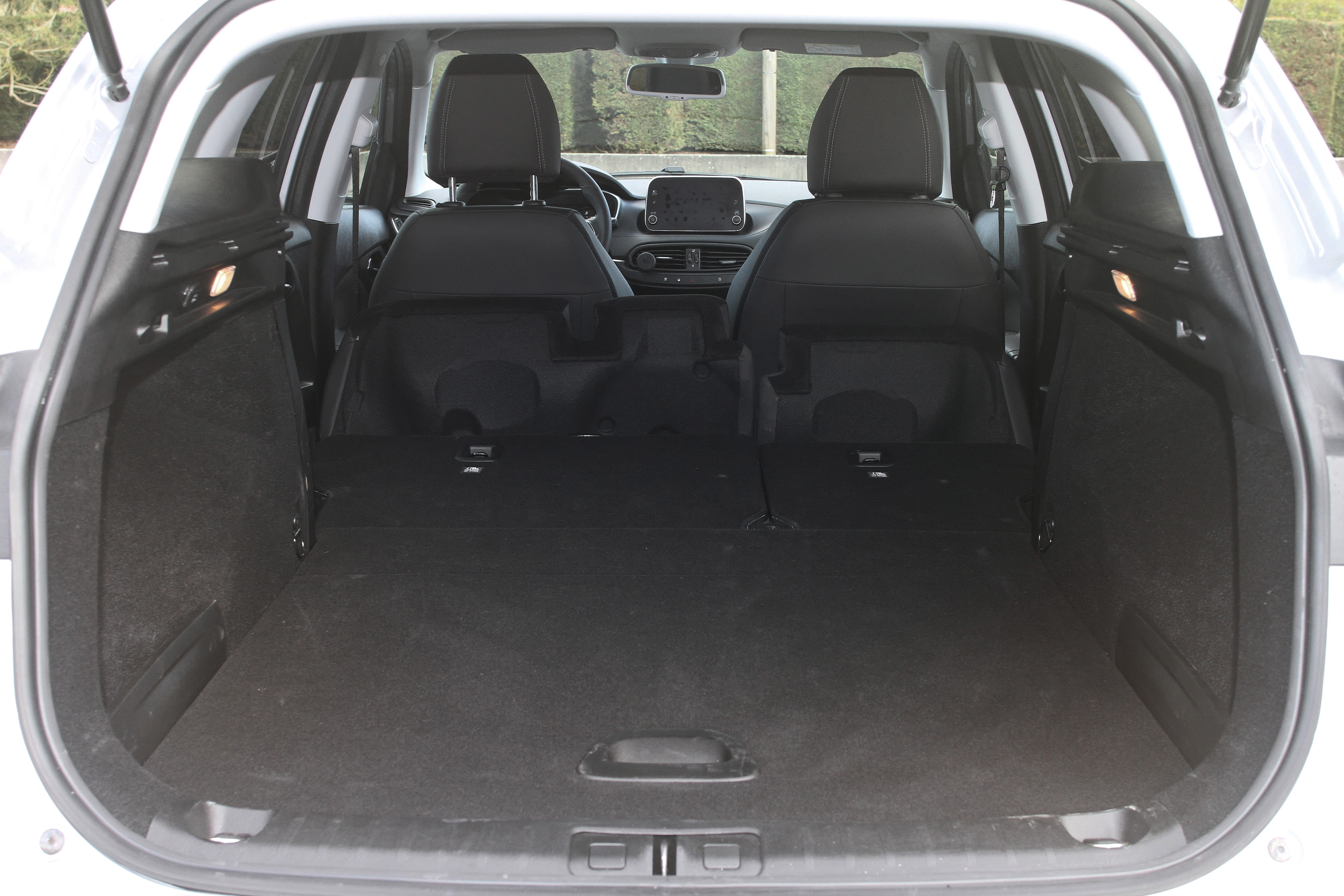 L’habitacle surprend par sa finition et sa grandeur. Les sièges sont tendus de cuir (version Lounge) et les grands gabarits (jusqu’à 1,87 m à l’avant et 1,80 à l’arrière) peuvent prendre place sans contraintes particulières grâce à un espace généreux dédié aux jambes (1,07 m à l’avant et 93,4 cm à l’arrière). Comme évoqué ci-dessus, la grande qualité de la Tipo réside dans le volume de son coffre. Avec 20 cm supplémentaires, il atteint maintenant 550 l (530 l avec le plancher amovible en place) pour s’étendre à 1650 l lorsque la banquette fractionnable dans une proportion de 40/60 est rabattue. Si on regrette l’absence d’une commande électrique pour la rabattre (ici tout est manuel), la bonne intégration des dossiers permet d’obtenir un plancher complètement plat pouvant accueillir des objets dont la longueur atteint 1,80 m.