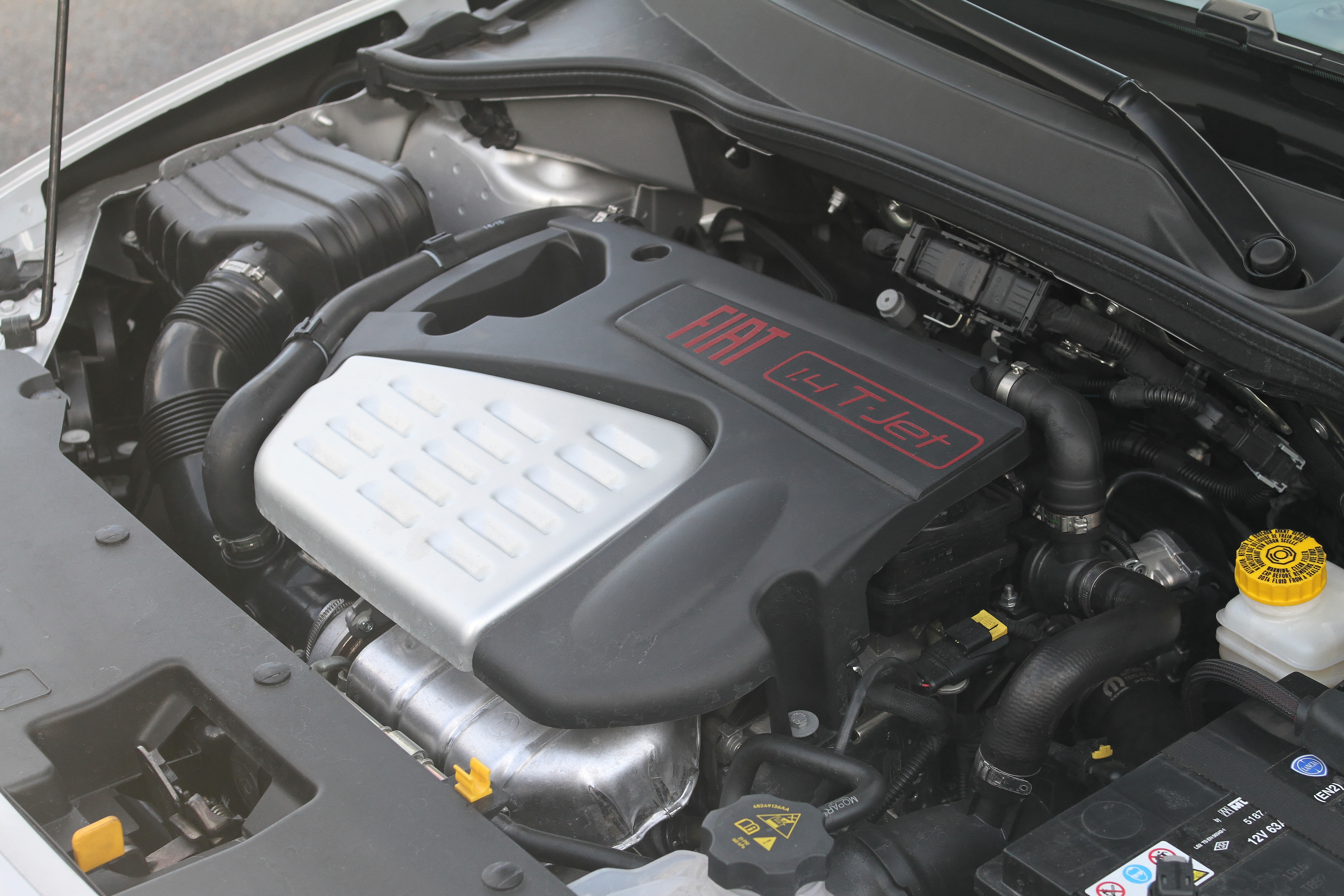 La Tipo SW dispose de 3 moteurs essence (1,4 l 95 ch, 1,4 T-Jet 120 ch, 1,4 T-Jet 120 ch GPL/essence et 3 moteurs diesel (1,3 l MultiJet 95ch, 1,6 l MultiJet II 120 ch, 1,6 l MultiJet eco 120 ch). Notre version est animée par le plus gros moteur essence (1,4 T-Jet de 120 ch) qui est un 4 cylindres turbocompressé de 1368 cm3. Il délivre une puissance de 120 ch à 5000 tr/mn pour un couple maxi de 215 Nm disponible dès 2500 tr/mn. Son injection est de type Multipoint et sa puissance est transmise aux roues avant via une boite de vitesses manuelle à 6 rapports. S’il répond à la norme Euro 6 et se targue d’un stysteme Start & Stop, les 139 g/km de Co2 qu’il rejette obligent la Tipo SW de s’acquitter d’un malus de 410 euros.