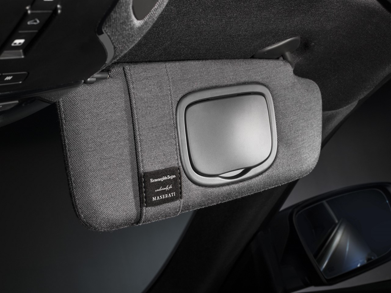 Mais les détails ne s’arrêtent pas là. D’autres éléments comme les pare-soleils habillés de soie et signés Zegna, les seuils de porte en aluminium satiné et fraisé dans la masse avec insert carbone tout autour de l’inscription “Maserati” et la plaque d’identification “Ermenegildo Zegna” apportent un raffinement ultime à la belle italienne.