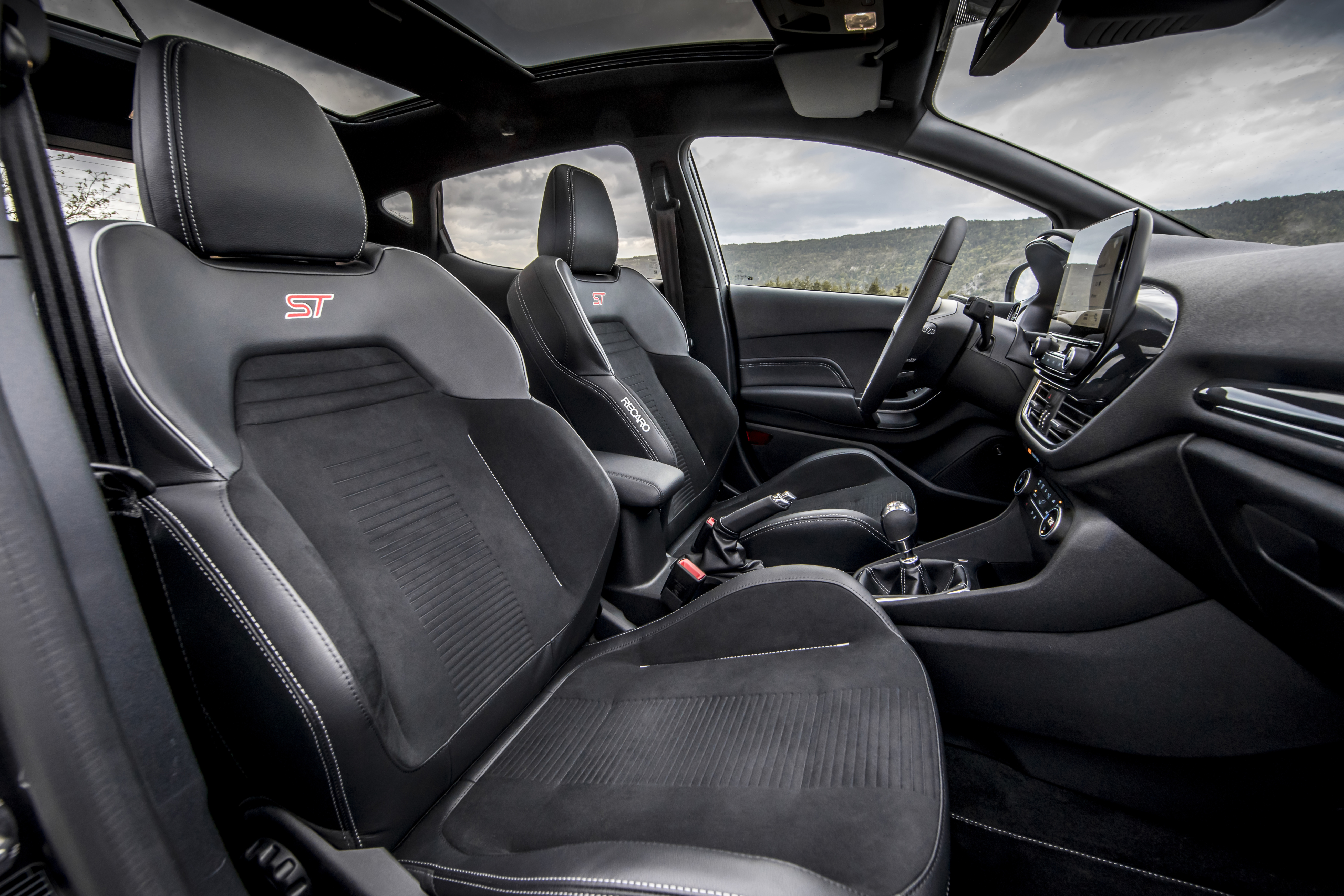 Toutes les versions sont dotées d’une double sortie d’échappement chromée et des projecteurs halogènes avec feux de jour et feux arrière à LED. Quant à l’habitacle, les sièges sport Recaro, le levier de vitesse siglé “ST” et le volant à méplat sont proposés de série. La nouvelle Fiesta ST est disponible en 7 coloris : Blanc Glacier, Rouge Racing, Bleu Performance, Noir Shadow, Gris Magnetic, Gris Lunaire et Gris Fox.