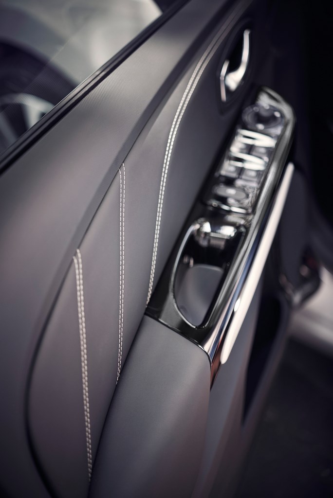 Planche de bord gainée façon cuir avec surpiqures vanille,