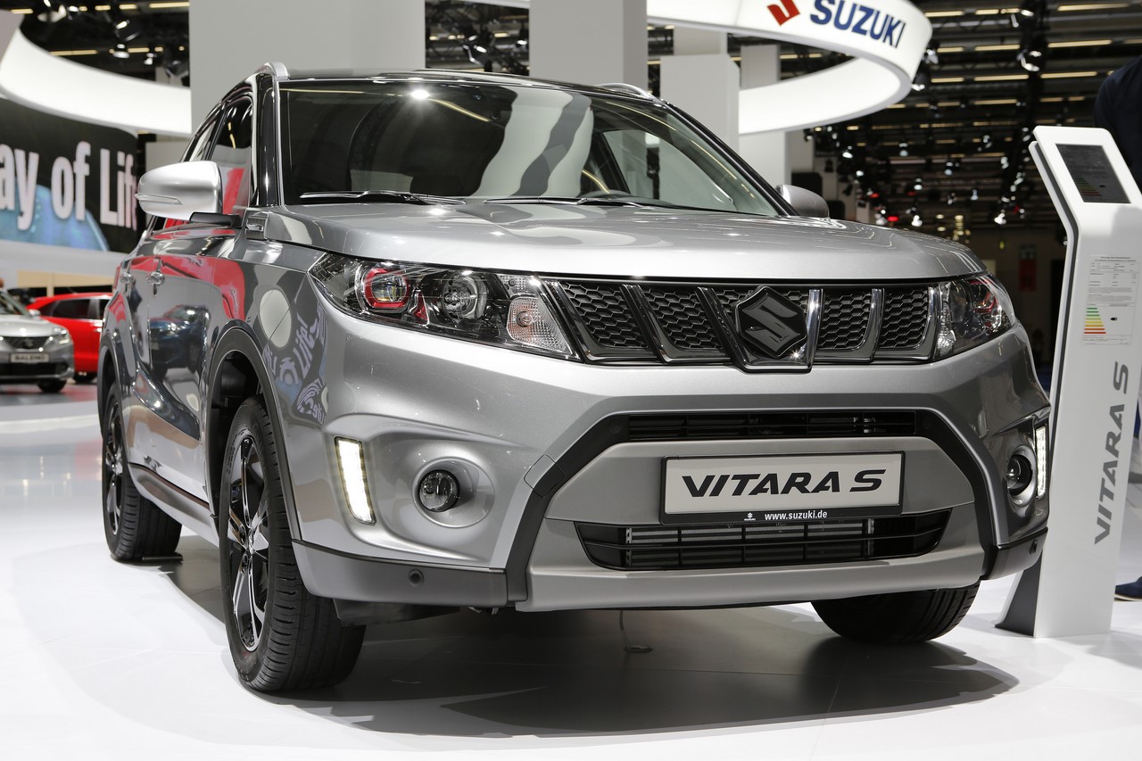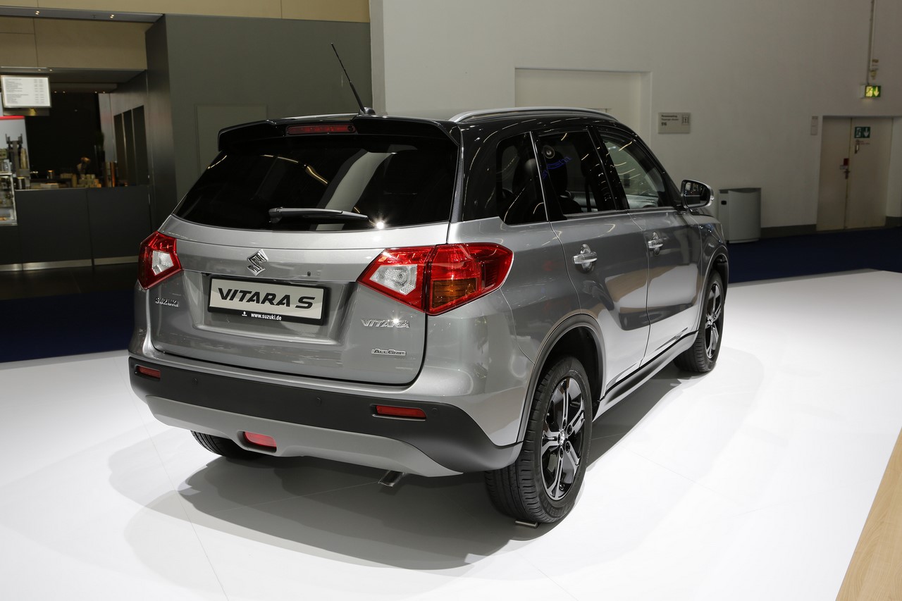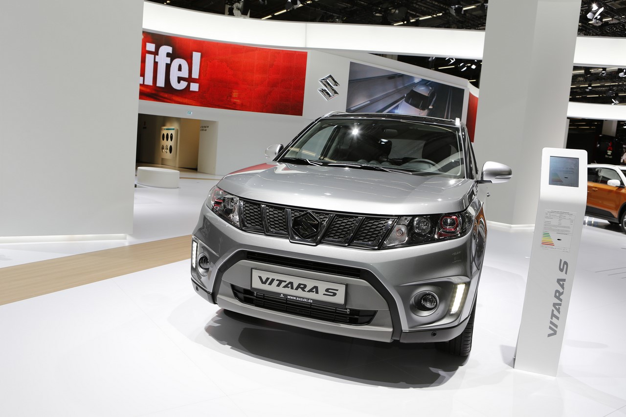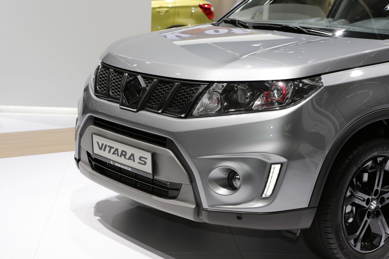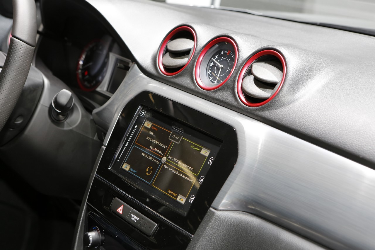 Présenté au Salon de Francfort 2015, le nouveau “Vitara S” s’identifie du premier coup d’œil par sa signature lumineuse à LED garnie de cerclages rouges. Ses optiques encadrent une nouvelle calandre et ses rétroviseurs s’affichent désormais en gris satin. Les grandes arches de roues abritent de nouvelles jantes alliage de 17’’ noires, qui donnent un look plus dynamique au SUV japonais. On l’apprécie dans cette finition grise à toit noir qui illustre cet article. A cette occasion, le constructeur dévoile une teinte “Brigth Red” qui complète la palette des 14 combinaisons de couleur déjà disponibles. Elle s’ajoute aux 8 combinaisons “So’Color” disponible en option, qui recouvrent les montants et le toit.