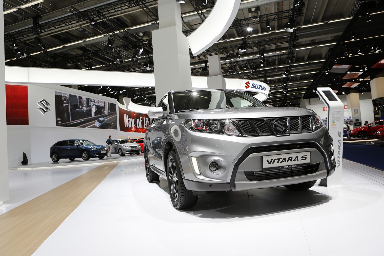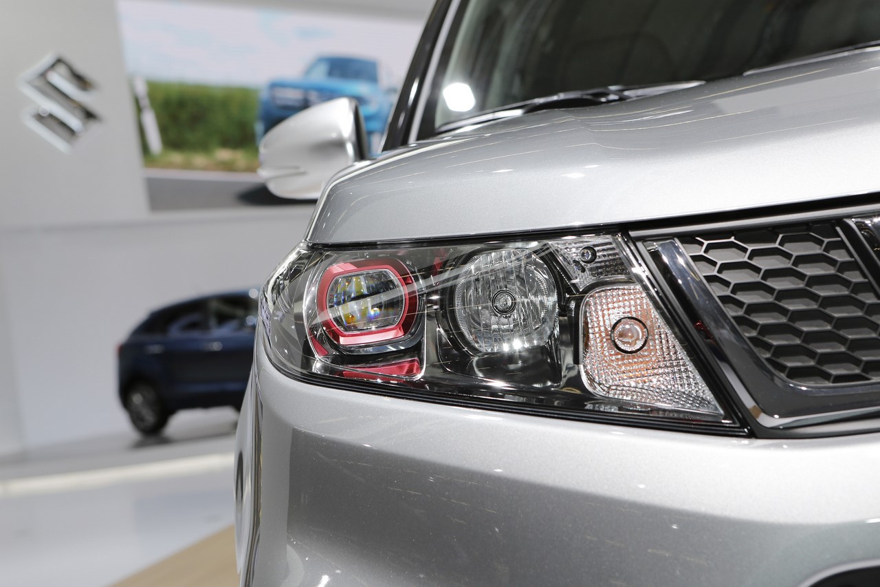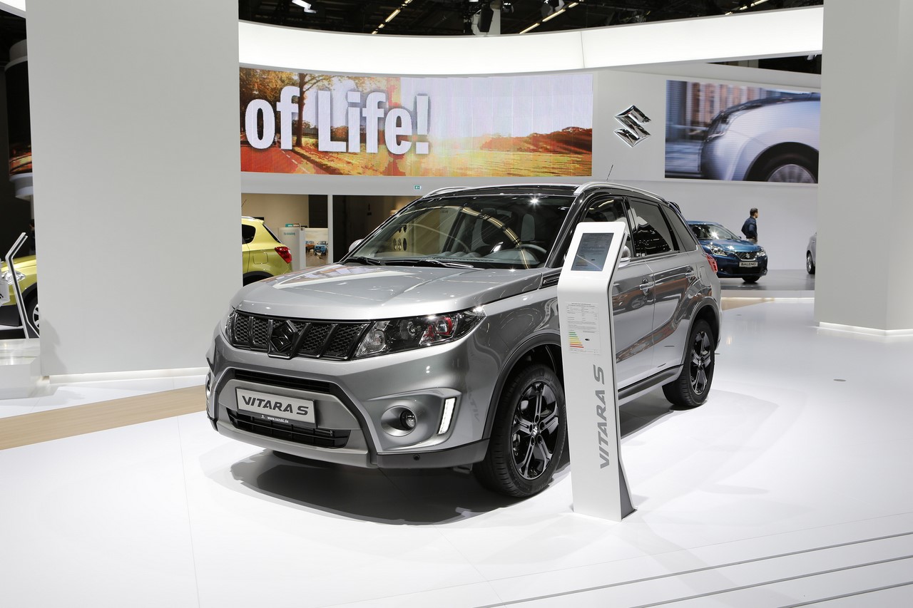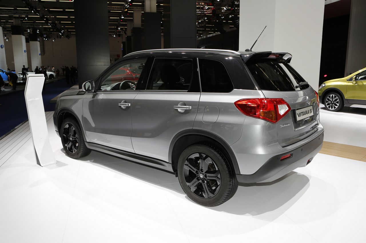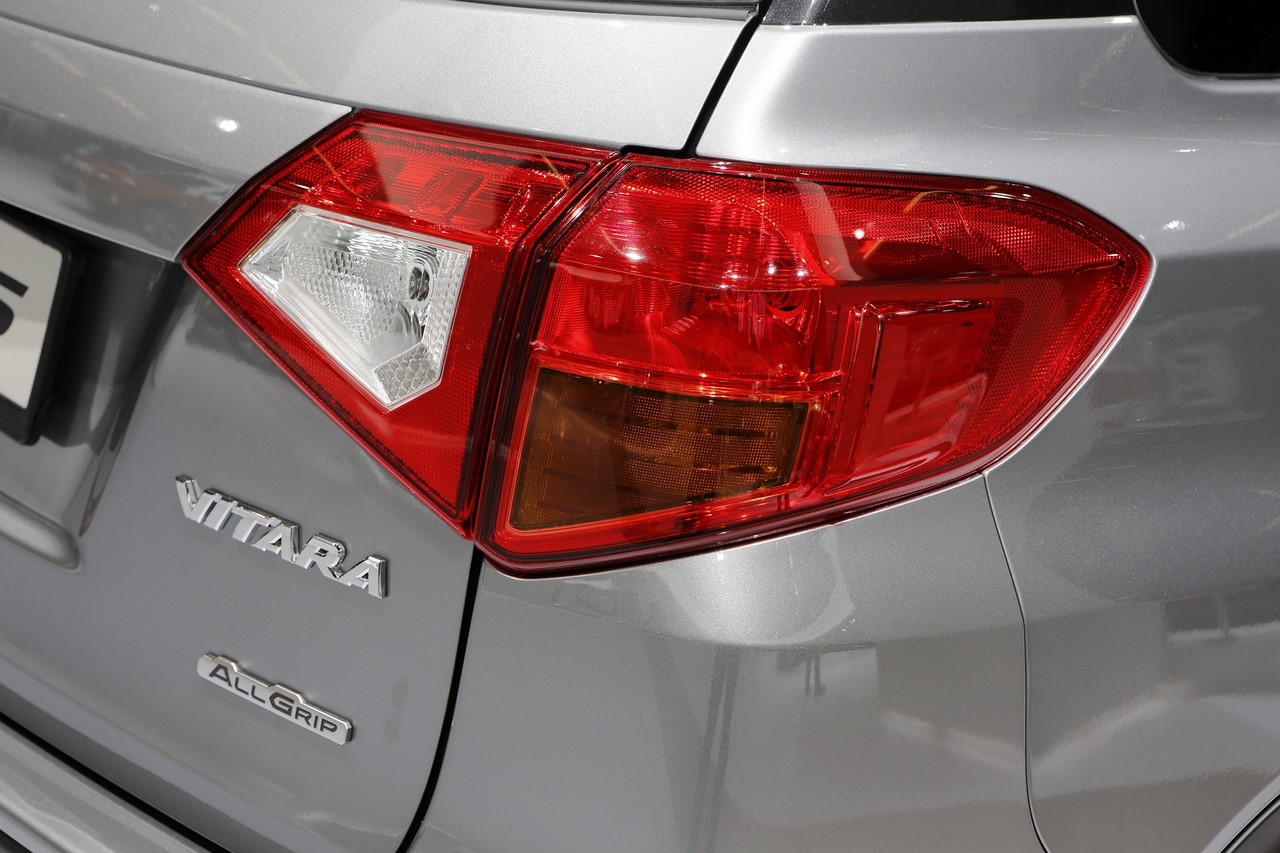 Présenté au Salon de Francfort 2015, le nouveau “Vitara S” s’identifie du premier coup d’œil par sa signature lumineuse à LED garnie de cerclages rouges. Ses optiques encadrent une nouvelle calandre et ses rétroviseurs s’affichent désormais en gris satin. Les grandes arches de roues abritent de nouvelles jantes alliage de 17’’ noires, qui donnent un look plus dynamique au SUV japonais. On l’apprécie dans cette finition grise à toit noir qui illustre cet article. A cette occasion, le constructeur dévoile une teinte “Brigth Red” qui complète la palette des 14 combinaisons de couleur déjà disponibles. Elle s’ajoute aux 8 combinaisons “So’Color” disponible en option, qui recouvrent les montants et le toit.