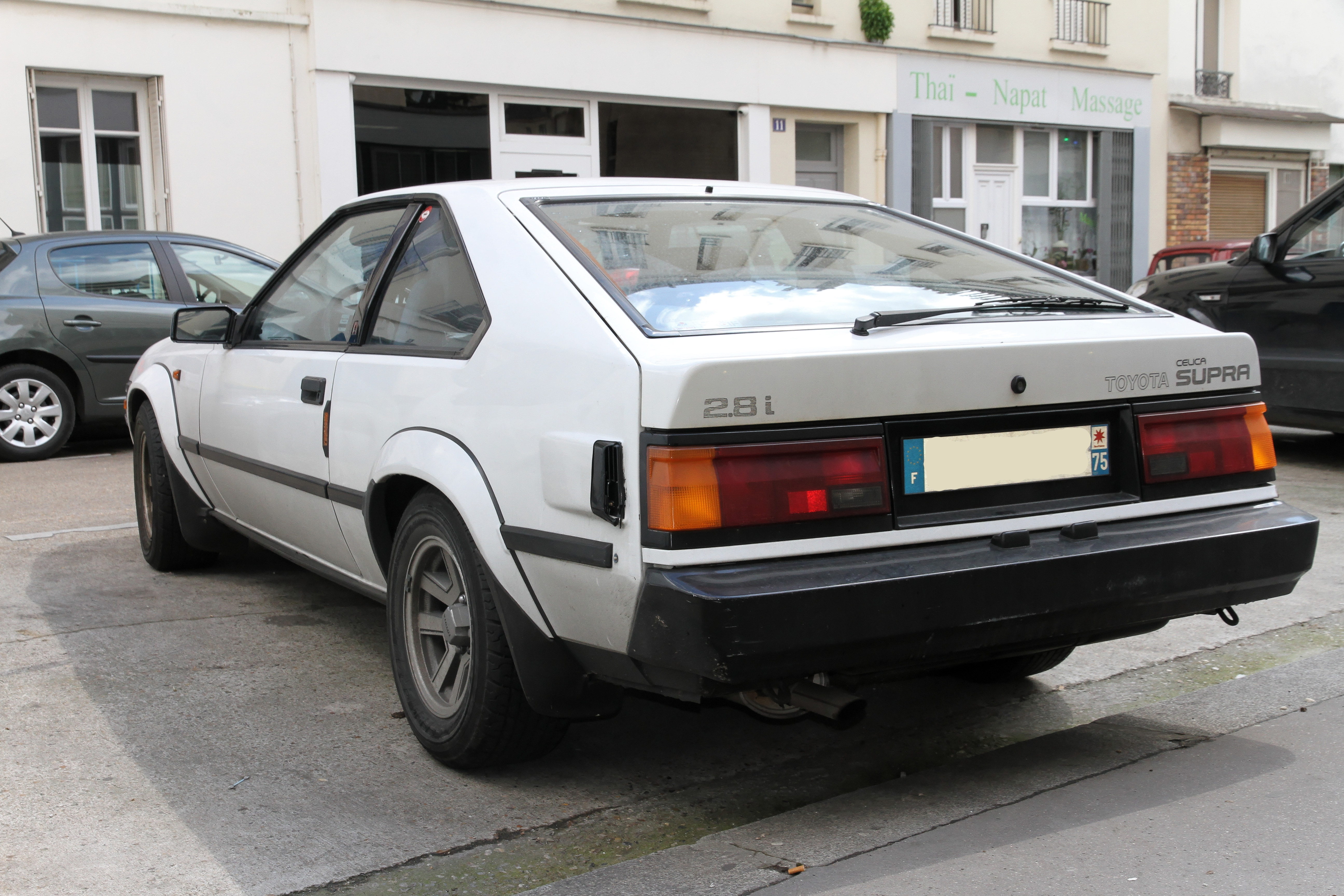 Aujourd’hui dans une rue parisienne, j’ai vu cette superbe Toyota Supra Mark 2 qui a été produite entre 1981 et 1986. Née sous le nom de code : MA61, elle est la première véritable Supra avec des phares rétractables et un six cylindres en ligner de 2.8 litres qui développe 170 cv. Elle est considérée comme une vraie GT. A titre d’information, elle est à vendre au prix de 12 000 euros.